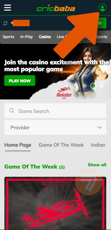 All Cricbaba slot games are found within the “Casino” section of their website or app.