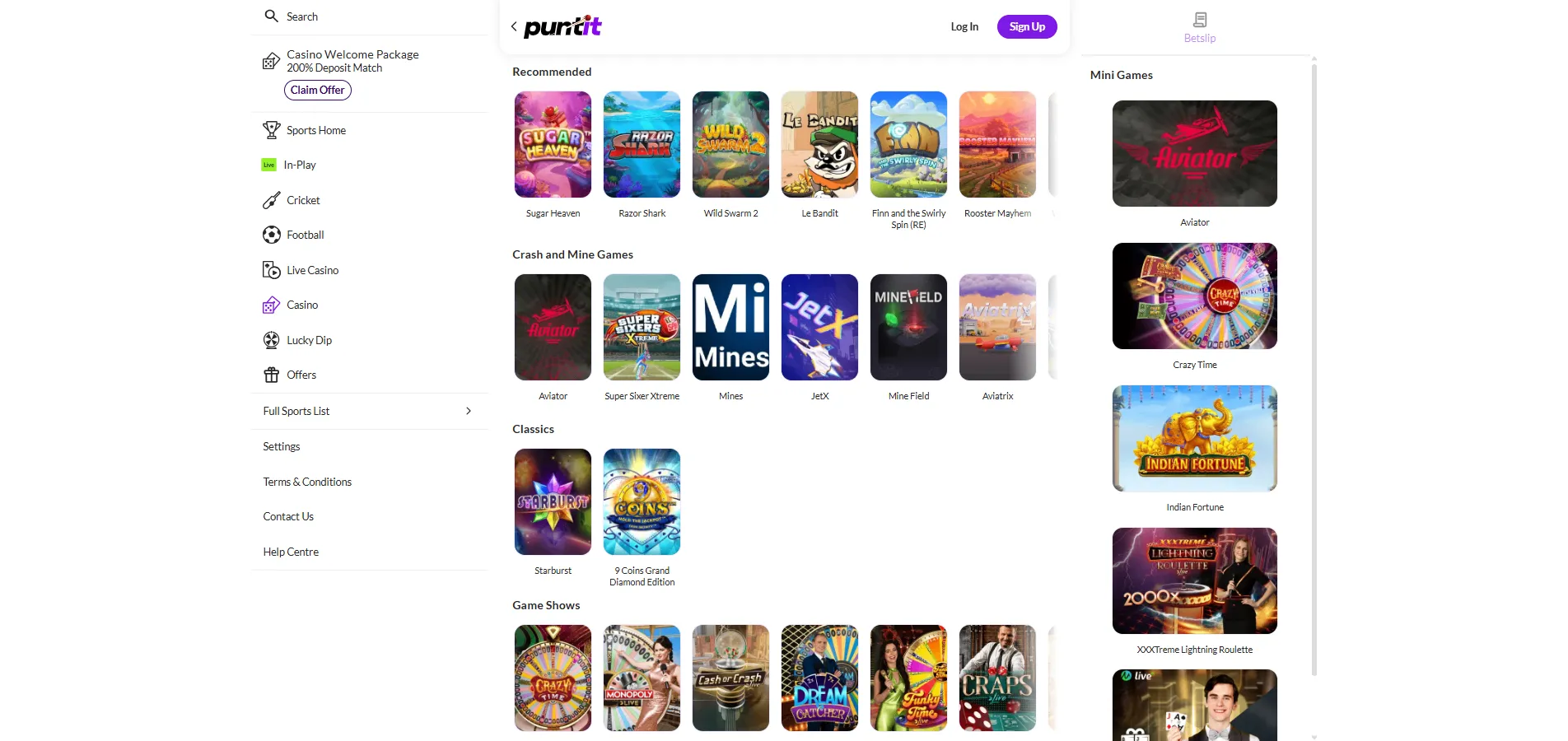 Slots, Crash & Sports