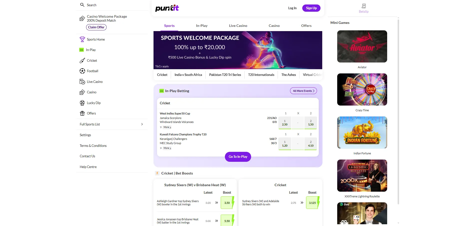 Yes—Puntit features a comprehensive sportsbook with cricket, football, basketball, and 30+ other markets, plus live betting and streaming options.